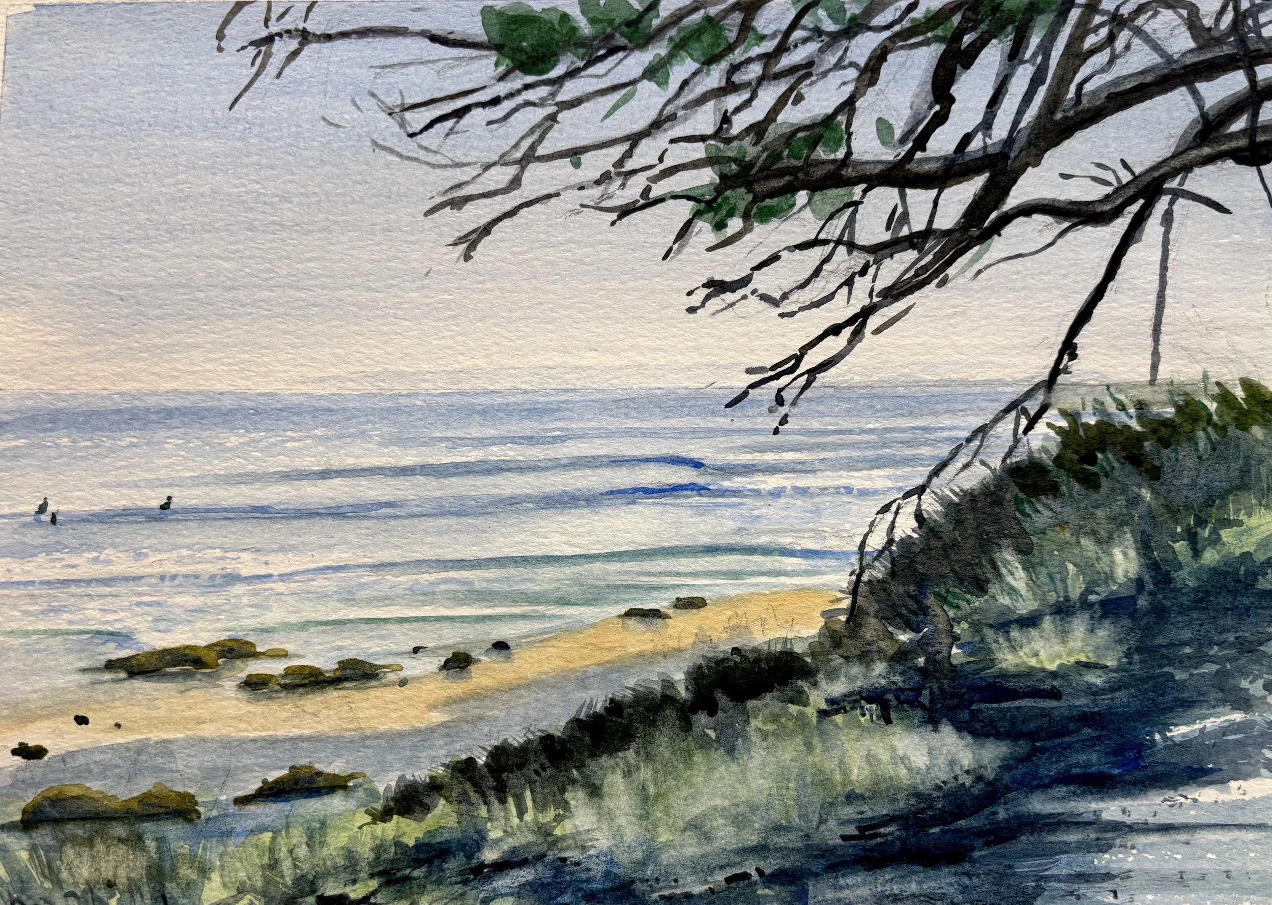 Miramar low-tide - 9”x 12” watercolor- SOLD